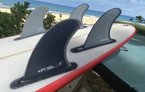 | フロントフィン (大) | トライフィンのサイドフィンと同じ役割。ドライブとホールドを担う。 | 面積が大きいほど推進力が増し、ターンが伸びる。 |